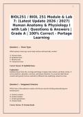 BIOL251 / BIOL 251 Module & Lab 7: (Latest Update 2026 / 2027) Human Anatomy & Physiology I with Lab | Questions & Answers | Grade A | 100% Correct - Portage Learning