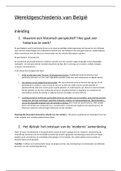 Samenvatting van het vak Wereldgeschiedenis van België, gegeven door onder meer Hilde Greefs in het eerste jaar aan de Universiteit Antwerpen. Er staan belangrijke personen en begrippen die gesitueerd in tijd zijn in. Het is een samenvatting op de basis van de cursustekst, gecombineerd met de lessen.