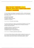Henric601 On this page, you find all documents, package deals, and flashcards offered by seller henric601. 281 Documents 0 Flashcards 0 Package deal Community 0 Followers 0 Following 281 items Everything Documents Flashcards Package deal Best sold Newest Rating Nursing 115 exam 1 mental health solutions questions with answers with answers 2023 updates Rated A+ (0) $23.97 0x sold Nursing 115 exam 1 mental health solutions questions with answers with answers 2023 updates Rated A+ i x Exam (elaborations) • 61 pages • by henric601 • uploaded 2023 Quick View i x Nursing 11estio • Nursing 11estio Case Study of Brain Tumor (0) $23.99 0x sold Case Study of Brain Tumor i x Exam (elaborations) • 48 pages • by henric601 • uploaded 2023 Quick View i x Case Study of Brain Tumor • Case Study of Brain Tumor Pediatrics Exam 2 Questions with Answers Tested and Verified Solutions with 100% Guaranteed Success (0) $18.99 0x sold Pediatrics Exam 2 Questions with Answers Tested and Verified Solutions with 100% Guaranteed Success i x Exam (elaborations) • 88 pages • by henric601 • uploaded 2023 Quick View i x Pediatristed an • Pediatristed an ATI PN MEDSURG PRACTICE TEST A.QUESTIONS WITH ANSWER 2023/2024 (0) $23.97 0x sold ATI PN MEDSURG PRACTICE TEST A.QUESTIONS WITH ANSWER 2023/2024 i x Exam (elaborations) • 14 pages • by henric601 • uploaded 2023 Quick View i x ATI PN NSW • ATI PN NSW HESI PN EXIT VERSION 1,2 & 3 UPDATE (2023-2024) QUESTIONS WITH CORRECT ANSWERS (0) $19.49 0x sold HESI PN EXIT VERSION 1,2 & 3 UPDATE () QUESTIONS WITH CORRECT ANSWERS i x Exam (elaborations) • 151 pages • by henric601 • uploaded 2023 Quick View i x HE2024) Q • HE2024) Q NSG 3039 Hamric and Hanson's Advanced Practice Nursing 6th Edition New Update 2023 (0) $18.49 0x sold NSG 3039 Hamric and Hanson's Advanced Practice Nursing 6th Edition New Update 2023 i x Exam (elaborations) • 124 pages • by henric601 • uploaded 2023 Quick View i x NSG 3039 Hamtice Nur • NSG 3039 Hamtice Nur HEALTH ASSESSMENT HESI Questions and Answers with Rationales (0) $23.97 0x sold HEALTH ASSESSMENT HESI Questions and Answers with Rationales i x Exam (elaborations) • 473 pages • by henric601 • uploaded 2023 Quick View i x HEALTH ASSswers with • HEALTH ASSswers with HazMat Operations Possible 2023 Questions and Answers (0) $23.97 0x sold HazMat Operations Possible 2023 Questions and Answers i x Exam (elaborations) • 24 pages • by henric601 • uploaded 2023 Quick View i x HazMat d Answ • HazMat d Answ NURS 2023 NCLEX V4 PRACTICE EXAM QUESTIONS WITH ANSWERS AND EXPLANATIONS A+ (0) $23.97 0x sold NURS 2023 NCLEX V4 PRACTICE EXAM QUESTIONS WITH ANSWERS AND EXPLANATIONS A+ i x Exam (elaborations) • 49 pages • by henric601 • uploaded 2023 Quick View i x NURS 2023 WITH A • NURS 2023 WITH A NURS PN NCLEX EXAM QUESTIONS WITH ANSWERS AND EXPLANATIONS (0) $18.99 0x sold NURS PN NCLEX EXAM QUESTIONS WITH ANSWERS AND EXPLANATIONS i x Exam (elaborations) • 49 pages • by henric601 • uploaded 2023 Quick View i x NURS PN ND EXPL • NURS PN ND EXPL 1 ... 5 6 7 ...