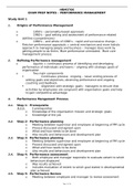 HRM3706 EXAM PREP NOTES – PERFORMANCE MANAGEMENT Study Unit 1 1. Origins of Performance Management o 1950’s – personality-based appraisals o 1960’s – goal setting and assessment of performance related abilities (competencies) o 1980’s – and whole of 1990’s – rapid and successive change – Fletcher...