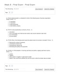 Final examination covered all topics covered over this past eight week to include this week’s topics.