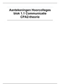 In dit document staan de aantekeningen van zes hoorcolleges van blok 1.1 Communicatie aan de Hanzehogeschool Groningen. De hoofdstukken uit Michels die hierbij horen zijn: H1, H2, H5.1, H5.3, H5.5, H 5.6, H6.1, H8.1, H8.4, H9.1 tm 9.3, H 10.1 tm 10.3 en H15.1 tm 15.5.
