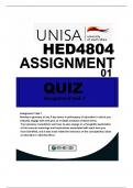 HED4802 ASSIGNMENT 01 (QUIZ) DUE 2024