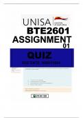 BTE2601 ASSIGNMENT 01 (QUIZ) DUE 06MAY2024