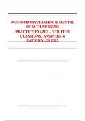 WGU D449 PSYCHIATRIC & MENTAL HEALTH NURSING PRACTICE EXAM 2 – VERIFIED QUESTIONS, ANSWERS & RATIONALES 2025 BUNDLE