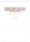 Washington Mandatory Alcohol Server Training Exam 2025 Complete Verified Questions with 100% Correct Answers and Guaranteed Pass