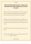 - GOOGLE CERTIFIED EDUCATOR LEVEL 1 EXAM ALL 300 QUESTIONS AND CORRECT ANSWERS LATEST UPDATE THIS YEAR • Exam (elaborations)