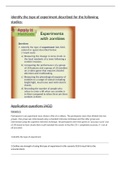 A worksheet which has exam practise questions that test and consolidate your knowledge on Lab and field experiments.