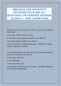 ARKANSAS LIFE INSURANCE LICENSING EXAM 2026 ALL QUESTIONS AND VERIFIED ANSWERS | RATED A + | NEW AND REVISED