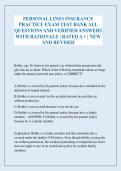 PERSONAL LINES INSURANCE PRACTICE EXAM TEST BANK ALL QUESTIONS AND VERIFIED ANSWERS WITH RATIONALE | RATED A + | NEW AND REVISED