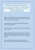 PENNSYLVANIA LIFE INSURANCE LICENSE EXAM 2026 ALL QUESTIONS AND VERIFIED ANSWERS | RATED A + | NEW AND REVISED