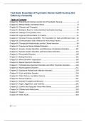TEST BANK VARCAROLIS ESSENTIALS OF PSYCHIATRIC MENTAL HEALTH NURSING 3RD EDITIONTable of Contents Chapter 01: Practicing the Science and the Art of Psychiatric Nursing ................................ 2 Chapter 02: Mental Health and Mental Illness .................................................................... 9 Chapter 03: Theories and Therapies ................................................................................ 16 Chapter 04: Biological Basis for Understanding Psychopharmacol...