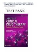 This document contains the test bank for Abrams’ Clinical Drug Therapy: Rationales for Nursing Practice, 12th Edition by Geralyn Frandsen. It includes comprehensive pharmacology practice questions with correct answers, designed to support nursing students in mastering medication therapy, drug classifications, and safe clinical practice.