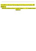 This document contains a complete and verified test bank for Edmunds' Pharmacology for the Primary Care Provider, 5th Edition by Zambroski and Rebecca M. Lutz, covering chapters 1 through 73. It is designed to support exam preparation and in-depth understanding of pharmacological principles relevant to primary care practice. The material reflects the newest version and is suitable for comprehensive review and assessment training.