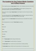The Academy for Dog Trainers Binder Questions and Verified Answers