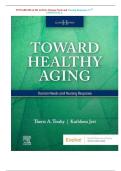 This test bank covers Toward Healthy Aging: Human Needs and Nursing Responses (11th Edition) and includes exam-style questions based on the full content of the textbook. It is designed to support nursing students with practice questions that align with key concepts in gerontological nursing, healthy aging, and nursing care of older adults.