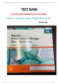 This document provides an extensive test bank for Clayton’s Basic Pharmacology for Nurses (19th Edition), featuring fully solved multiple-choice, multiple-response, and completion questions. It covers all major chapters, including drug legislation, pharmacokinetics, drug interactions, lifespan considerations, and the nursing process.