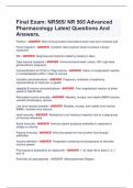 Final Exam: NR565/ NR 565 Advanced Pharmacology Latest Questions And Answers.