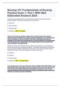 - Nursing 101 Fundamentals of Nursing Practice Exam 1, Part 1 With Well Elaborated Answers 2024. • Exam (elaborations)