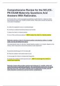 Comprehensive Review for the NCLEXPN EXAM Maternity Questions And Answers With Rationales.