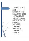 FLORIDA STATE FIRE INSTRUCTOR 1 EXAM 2023-2024 ACTUAL EXAM WITH OVER 300 QUESTIONS AND CORRECT DETAILED ANSWERS (VERIFIED ANSWERS)|AGRADE