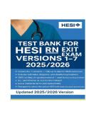 TEST BANK FOR HESI RN EXIT EXAM 2025/2026 VERSIONS 1–7 (V1, V2, V3, V4, V5, V6, V7) | RATED GRADE A+| 100% VERIFIED QUESTIONS & ANSWERS | !!!!!NEW LATEST UPDATE!!!!!