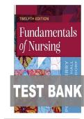 TEST BANK FOR Fundamentals of Nursing 12th Edition by Patricia A. Potter, Anne G. Perry, Stockert, Hall, Ostendorf ISBN: 9780443124068 COMPLETE GUIDE ALL CHAPTERS COVERED WITH RATIONALES 100% VERIFIED A+ GRADE ASSURED!!!!!NEW LATEST UPDATE!!!!!