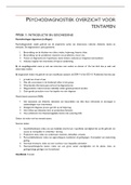 Dit document bevat alle informatie die je moet weten voor het tentamen, wat betreft testen die belangrijk zijn en uitwerkingen van de colleges van Psychodiagnostiek.