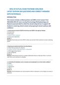 This comprehensive study guide is designed to support graduate nursing students preparing for the NSG 6001 Week 4 exam. It includes 100 carefully curated exam-style questions with detailed solutions, aligned with the 2026 curriculum updates. The guide focuses on key concepts such as advanced nursing roles, evidence-based practice, healthcare policy, ethics, and leadership foundations. Clear rationales enhance critical thinking, reinforce core content, and help students confidently master exam ma...