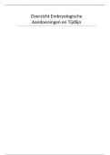 In dit document staan alle belangrijke data die te kennen zijn voor het vak embryologie. Ook kan je er de te kennen ziekten + korte uitleg in terug vinden. Ik slaagde in eerste zit met 18/20