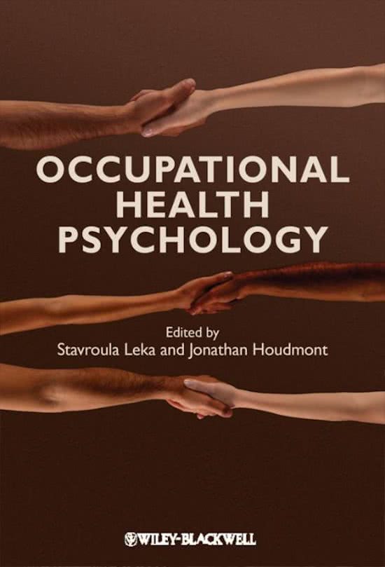Samenvatting boek Occupational Health Psychology met alle benodigde hoofdstukken voor het vak Work and Health in de master Organizational Psychology. Samenvatting is in het Nederlands, maar stuur me gerust een bericht als er behoefte is aan deze samenvatting in het Engels. Succes met studeren en je examen!
