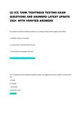 Comprehensive U3 ICC Tank Tightness Testing Exam Questions and Answers Latest Update 2025/ 2026 with solution, designed to help professionals master tank tightness testing procedures, reinforce understanding of ICC standards, improve practical inspection skills, and excel in certification exams through accurate, up-to-date practice questions with detailed explanations.