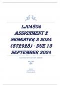 LJU4804 Assignment 2 Semester 2 2024 (572928) - DUE 13 September 2024 QUESTIONS WITH COMPLETE