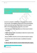 NURS MISC ATI EXAM QUESTIONS AND ANSWERS 100%CORRECT/VERIFIED BEST RATED A+ GUARANTEED SUCCESS LATEST UPDATE 2024 A nurse is caring for a client who is recovering from a stroke. The provider recommends an extracranial- intracranial bypass, but the client tells the nurse that he will not have the surgery. Which of the followingactions should the nurse take? A. Inform the client of the consequences of decreased cerebral circulation. B. Initiate a mental health consultation to determ...