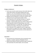 Summarised notes on Elizabeth I's Religious policies. Split up into distinct sections that can easily be transferred to an A level essay.
