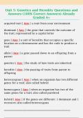 Unit 5: Genetics and Heredity Questions and Answers (100% Correct Answers) Already Graded A+