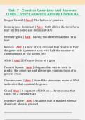 Unit 7 - Genetics Questions and Answers (100% Correct Answers) Already Graded A+
