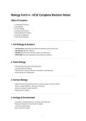 These notes provide a clear and well-organized summary of cell structure and function in Biology. They cover plant and animal cells, major cell organelles and their functions, and key differences between plant and animal cells. The document is suitable for secondary school, KCSE, and IGCSE students and is ideal for revision, exam preparation, and quick study.