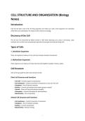 Cell Structure and Function – Biology Summary Notes