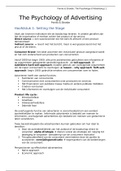 Samenvatting van The Psychology of Advertising. Wanneer je de college-aantekeningen er bij koopt, is dit een compleet beeld van de theorieën die je moet kennen voor het tentamen.