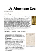 Krant over de grondwet wijziging en minder macht voor de koning door Johan Thorbecke uitgeschreven in een klein artikel. Onderaan een interview met Johan Thorbecke met bijbehorende plaatjes en geschreven en uitgewerkt in een mooie krantenartikel.