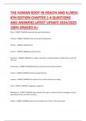 THE HUMAN BODY IN HEALTH AND ILLNESS 6TH EDITION WITH QUESTIONS AND CORRECT MARKING SCHEME ALL VERIFIED.