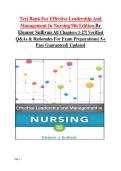 Test Bank For Effective Leadership And Management In Nursing 9th Edition By Eleanor Sullivan All Chapters 1-27| Latest Update| Score 100%