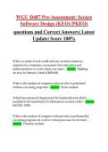 This document covers the full WGU D487 Secure Software Design pre-assessment, including secure coding practices, threat modeling, SDLC/SDL phases, security testing techniques, privacy and compliance requirements, and risk assessment frameworks. It includes fully solved pre-assessment questions with correct answers, making it an effective study guide for mastering key concepts and preparing for the WGU D487 objective assessment.