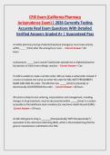 This document contains an extensive CPJE exam question bank covering California pharmacy law, federal and state regulations, controlled substances, dispensing rules, pharmacist responsibilities, and clinical practice requirements. It includes accurate, exam questions with clearly verified answers designed to reflect current CPJE testing standards. The material is well suited for final exam preparation, review sessions, and self-testing ahead of the CPJE.