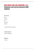 This document covers Chapters 1 and 2 of the COR 195 course at ECPI University, focusing on critical thinking in nursing practice. It includes clearly structured questions and correct answers addressing the nursing process, clinical reasoning, clinical judgment, emotional intelligence, problem-solving, and reflective thinking. The content is updated for 2026 and supports exam preparation, concept clarification, and practical application in clinical settings.