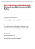This document covers the full WGU D415 Software-Defined Networking (SDN) Objective Assessment, including exam-style multiple-choice questions with correct answers and clear rationales. It addresses core SDN concepts such as control and data planes, OpenFlow, controllers, security, OpenStack components, and enterprise/cloud use cases. The material is organized for efficient exam preparation and aligned with the 2026 OA update, making it suitable as complete exam review material.