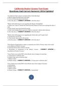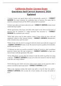 This document contains a comprehensive collection of California Dealer License Test exam questions with verified correct answers, covering retail and wholesale dealer regulations, DMV procedures, licensing requirements, fees, bonds, advertising rules, and consumer protection laws. It is fully updated for 2026 and aligns with the California Vehicle Code and DMV occupational licensing standards. This material is ideal for exam preparation, refresher study, and compliance training for prospective a...