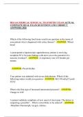 This document contains a comprehensive collection of real Medical-Surgical Telemetry exam questions with correct answers, aligned with the RELIAS exam format. It covers a wide range of topics including cardiac rhythms, pharmacology, fluid and electrolyte balance, neurological assessment, respiratory care, infection control, and emergency nursing interventions. The material is suitable for exam preparation, review, and reinforcing clinical decision-making skills for medical-surgical and telemetry...