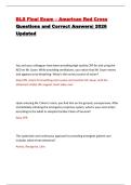 This document is an updated BLS Final Exam study guide containing exam questions with correct, verified answers based on American Red Cross Basic Life Support guidelines. It covers adult, child, and infant CPR, AED use, airway management, choking response, team dynamics, high-quality CPR components, opioid overdose response, and in-hospital and out-of-hospital cardiac arrest scenarios. The content is presented in a clear question-and-answer format to support focused review of core BLS knowledge ...